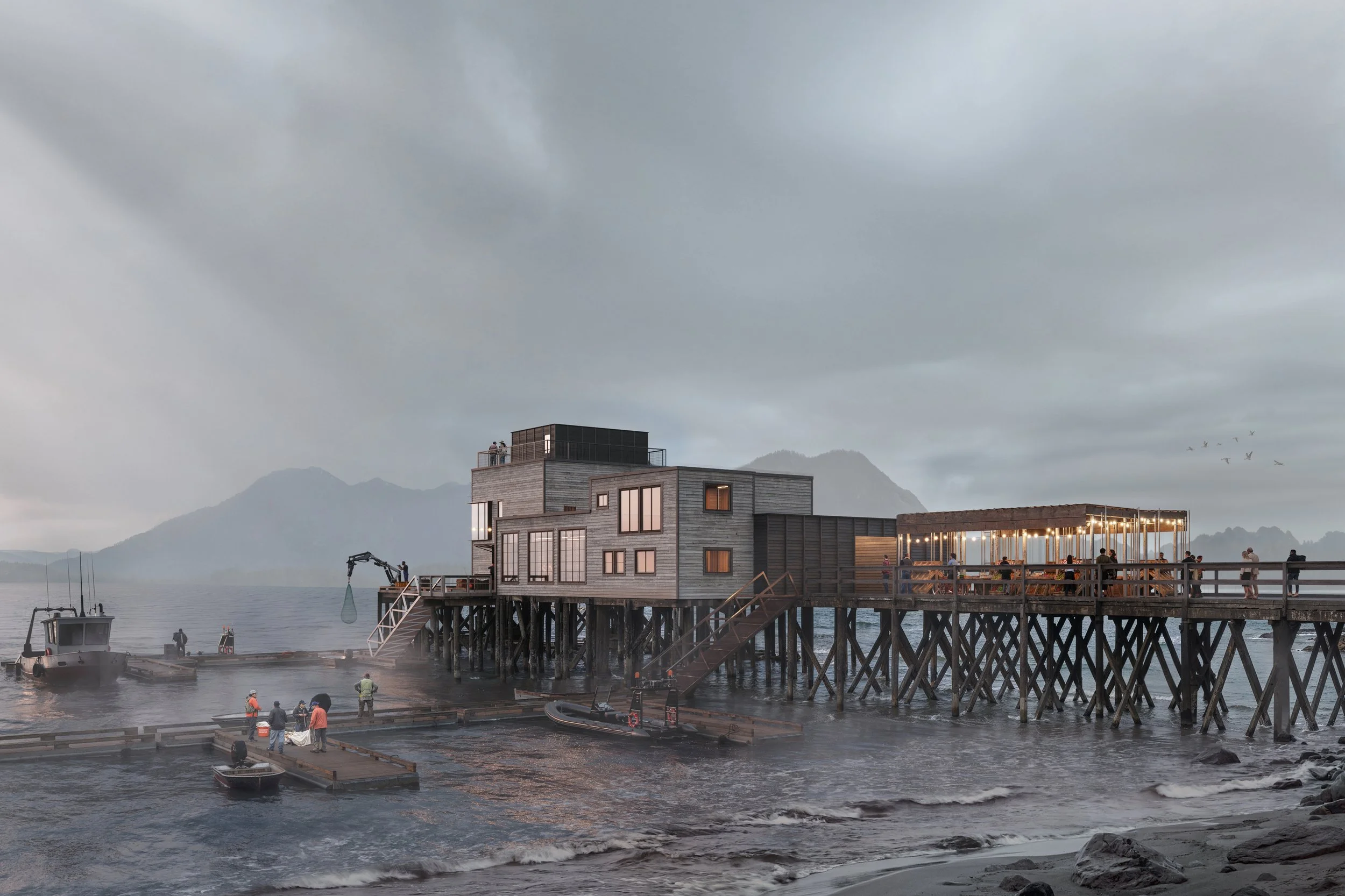 The future vision for the Tofino Fish Pier is one that not only preserves the architectural qualities of industrial marine heritage building but transforms its function and relationship to surrounding community by establishing long-term partnerships with local Indigenous start-ups and non-profit organizations. The task now is to create a “blank-slate” future-ready development built on collaboration with Indigenous community members to foster flexibility within the pier’s unique industrial spaces. The vision is to repurposing a colonialist historical landmark in Tofino – and do it in a manner that acknowledges the thousands of years of living history found in the region, creating a space for indigenous enterprise in Tofino.